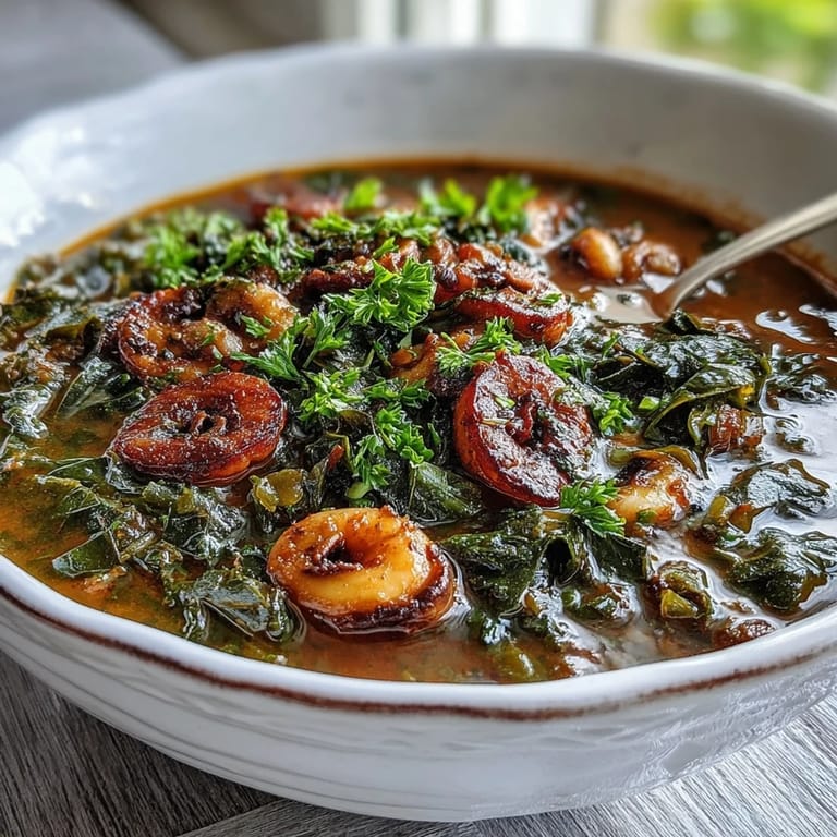 Serve this hot with cornbread on the side, or over rice if you want something more substantial—it soaks up the broth beautifully and turns simple grain into something memorable. This stew actually improves after a day or two in the refrigerator as the flavors continue to meld and deepen, so it's wonderful for batch cooking on a Sunday evening. It freezes well too, though the collard greens lose some of their texture, so if you're freezing ahead, you might add fresh greens when you reheat.