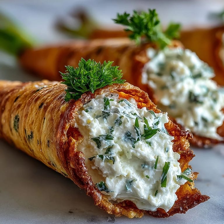 These carrot cones are wonderfully adaptable to different tastes and dietary needs. Substitute crackers with baked tortilla wraps for a crunchier texture and larger cones. For added flavor, mix in a pinch of smoked paprika or chopped fresh herbs like dill or basil into the cheese filling. You can also experiment with different cheese combinations—try pepper jack for a spicy kick or add crumbled blue cheese for a gourmet twist. For those avoiding food coloring, finely grated carrots mixed into the filling provide natural color and added nutrition. The herb tops can vary too—try cilantro, green onion tops, or even thin asparagus spears for different visual effects.