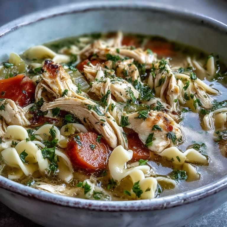 This soup is best eaten the day you make it while the noodles still have a bit of texture, though it keeps in the fridge for three days if you store the broth and noodles together. If you're meal prepping, store the broth and chicken separately from the noodles and combine them when you reheat, which keeps everything from turning into mush. Serve it in wide bowls with crusty bread on the side for dipping, or pair it with a light green salad if you want something fresher alongside it.