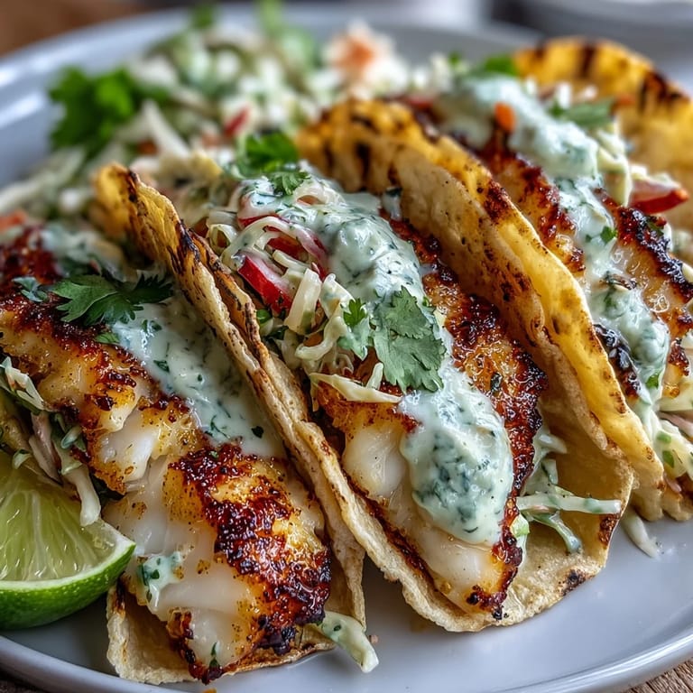 Save Experience the vibrant flavors of summer with these Coconut Lime Grilled Fish Tacos. Tender white fish fillets soak up a luscious marinade of creamy coconut milk and bright lime zest before hitting the grill. Each bite is complemented by a crunchy red cabbage and carrot slaw, tossed in fresh lime juice and cilantro. Finished with a tangy coconut lime crema, these tacos offer a perfect balance of zest, creaminess, and texture, making them an effortless yet impressive main dish for any occasion.