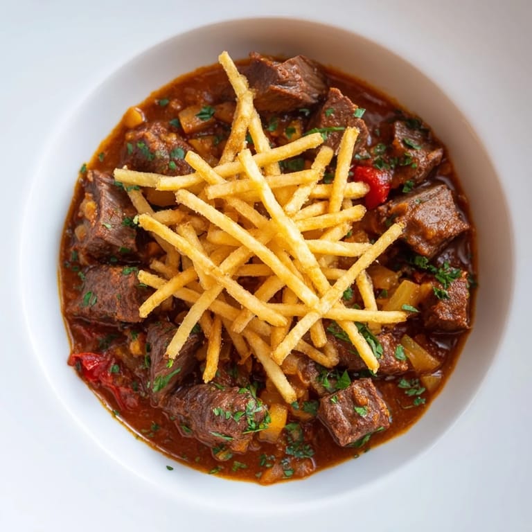 Save My first Czech goulash came together on a cold November evening when a friend from Prague arrived unannounced with a small bag of Hungarian paprika and a story about her grandmother's kitchen. She watched me fumble through the steps, correcting me gently when I rushed the onions, reminding me that good goulash lives in patience, not speed. The beef transforms completely in those two hours, surrendering to the spiced broth until it becomes impossibly tender. When the potato strips hit the hot oil and turned golden, the whole apartment smelled like Sunday dinners I'd never actually had—which somehow felt right.