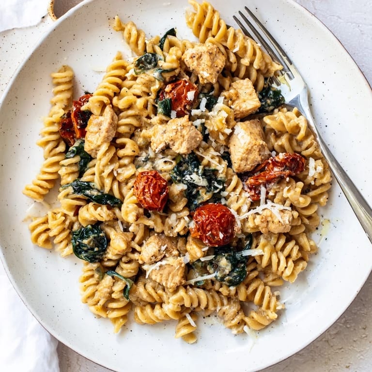 I have swapped the chicken for turkey, chickpeas, or even sauteed mushrooms depending on who I am feeding. You can toss in steamed broccoli, peas, or roasted red peppers if you want more vegetables, and a pinch of red pepper flakes adds a nice kick. One time I used rotini instead of penne and it worked just as well, so do not stress about the shape.