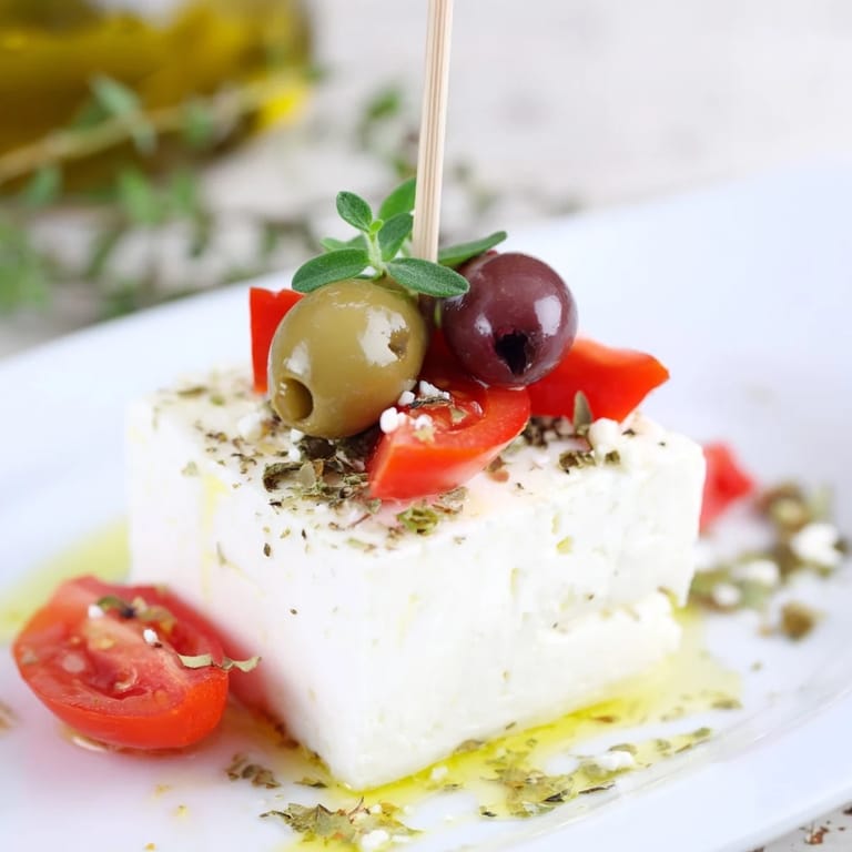- Pat the feta cubes dry with a paper towel to remove excess moisture.