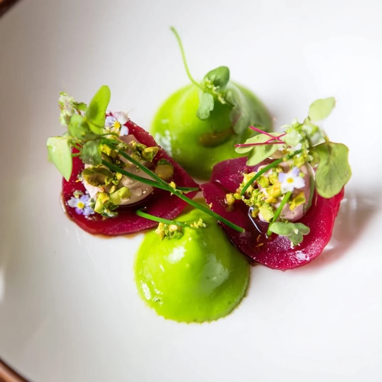 - Garnish: Handful of baby arugula leaves, Edible flowers (optional), Extra chopped pistachios