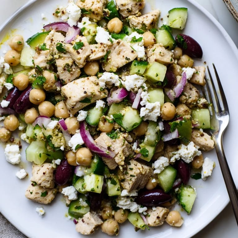 Yes, easily. Simply omit the chicken and increase the chickpeas to 2 cans or add extra legumes like white beans. The salad remains protein-rich and satisfying with the chickpeas, feta cheese, and olive oil base.