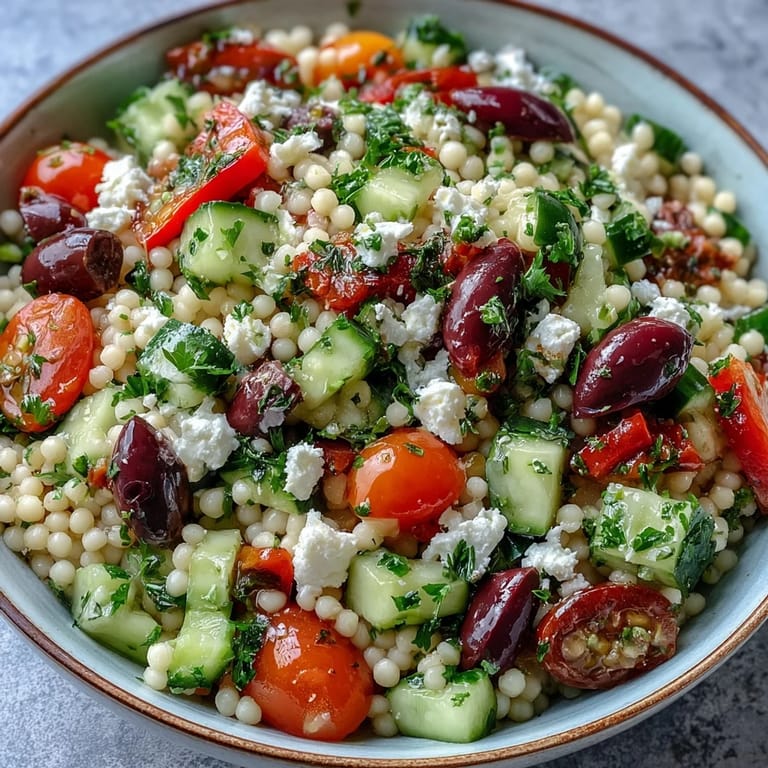 Save One warm afternoon, I dumped a bag of pearl couscous onto my counter and watched the tiny orbs roll everywhere. I'd bought them on impulse, charmed by their shape, with no real plan. That evening, I toasted them in a dry pan until they smelled nutty and golden, then tossed them with whatever looked bright in my fridge. The result was so satisfying, so full of color and crunch, that I've been making variations ever since.