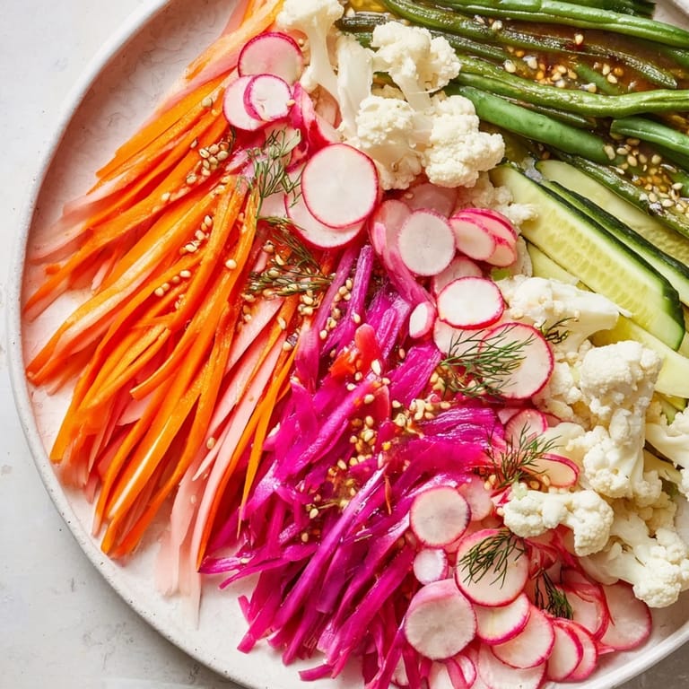 Save There's something profound about serving food that you've made with your own hands, knowing that patience did most of the work. When my young niece tried these pickles for the first time, she pointed at the vibrant colors and asked if I'd painted them. That simple question reminded me why I love making food—it becomes a little piece of care that you're offering to the people you love.