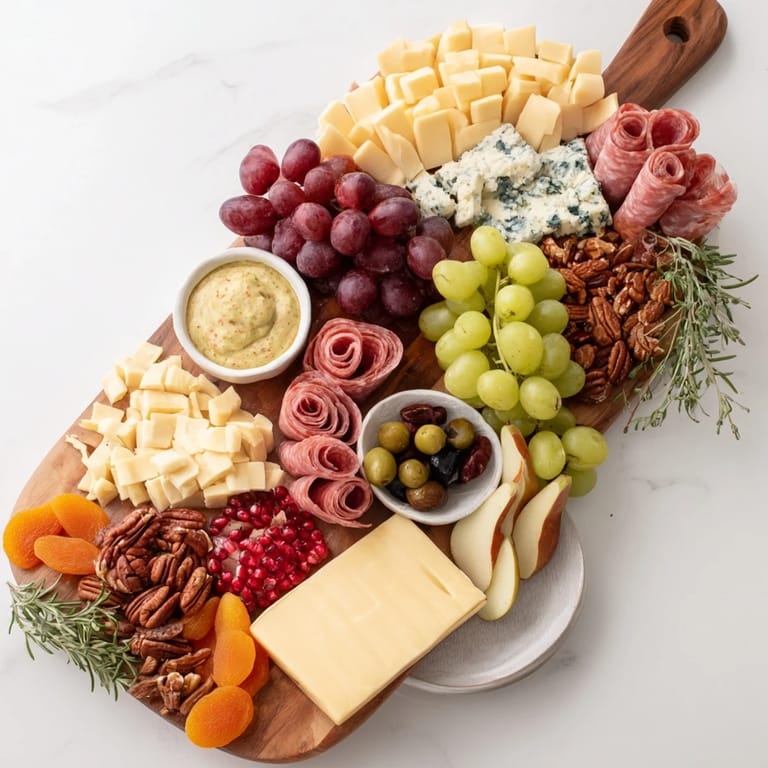- Accents & Garnishes: 1/2 cup candied pecans 1/3 cup olives (green and black mix) 1/4 cup cornichons 1/4 cup whole grain mustard Fresh rosemary and thyme sprigs (for garnish)