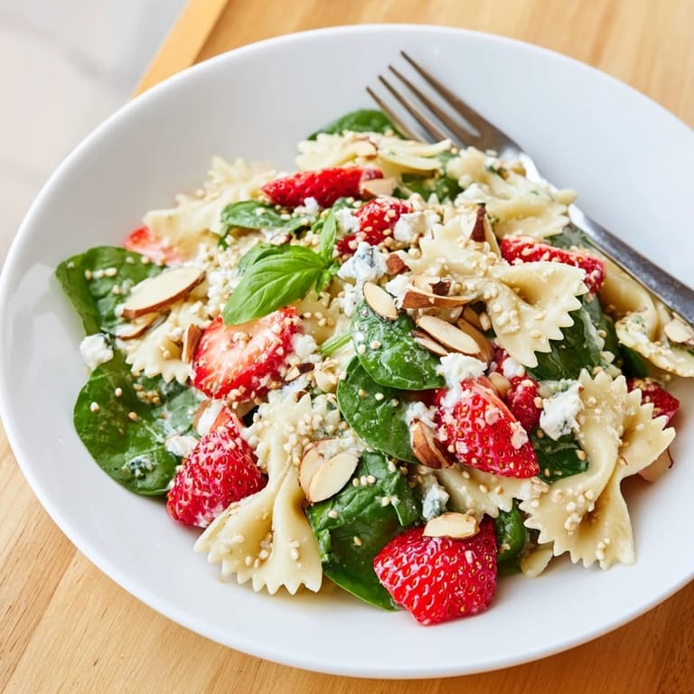 Save My neighbor showed up one May afternoon with a basket of strawberries from her garden, insisting I use them before they turned. I had pasta in the pantry, spinach in the crisper, and no plan whatsoever. What came together in under half an hour turned into the dish I now bring to every potluck, picnic, and porch gathering when the weather warms. It tastes like sunshine in a bowl, and people always ask for the recipe.