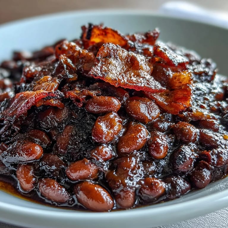 This recipe balances the natural creaminess of navy beans with the deep sweetness of brown sugar and molasses, brightened by apple cider vinegar and a hint of heat from cayenne. Cooking the bacon first in the skillet imparts savory depth, while baking melds the flavors and thickens the sauce to a luscious finish.