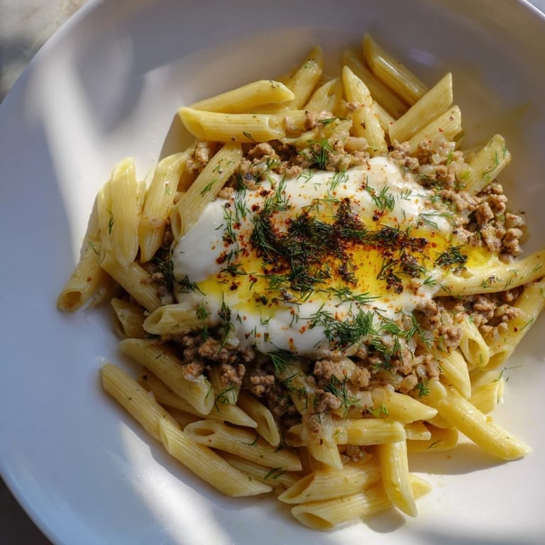 Save Last winter, I was scrolling through my feed when a video of creamy pasta drizzled with red butter stopped me cold. The colors alone made me hungry. I had ground turkey in the fridge and a tub of yogurt, so I tried my own version that same night. The spiced butter hit the cool yogurt and created this beautiful marbled swirl that tasted even better than it looked. I've made it at least a dozen times since, tweaking the spices until it felt just right.